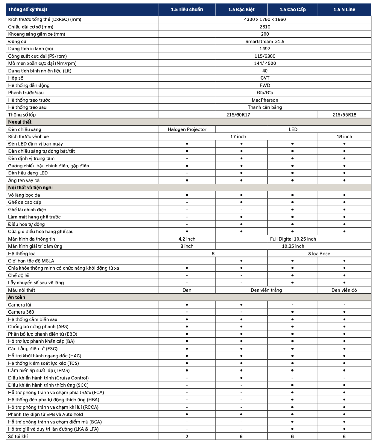 Hyundai Creta 1.5L N-Line: | 715 triệu đồng |