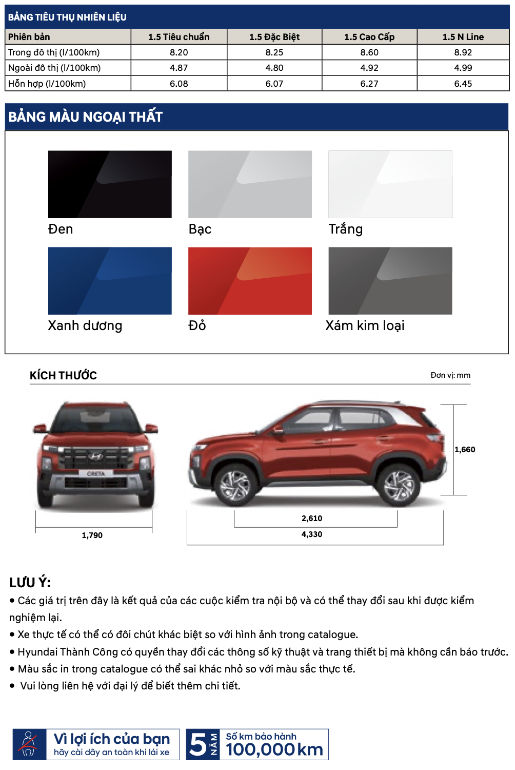 Do là Hyundai Creta được nhập khẩu tại thị trường nước ngoài nên được bảo hành lên đến 5 năm hoặc 100.000km ( tuỳ theo điều kiện nào đến trước ).