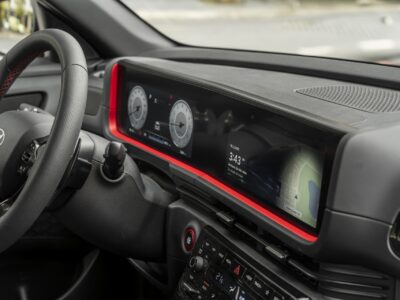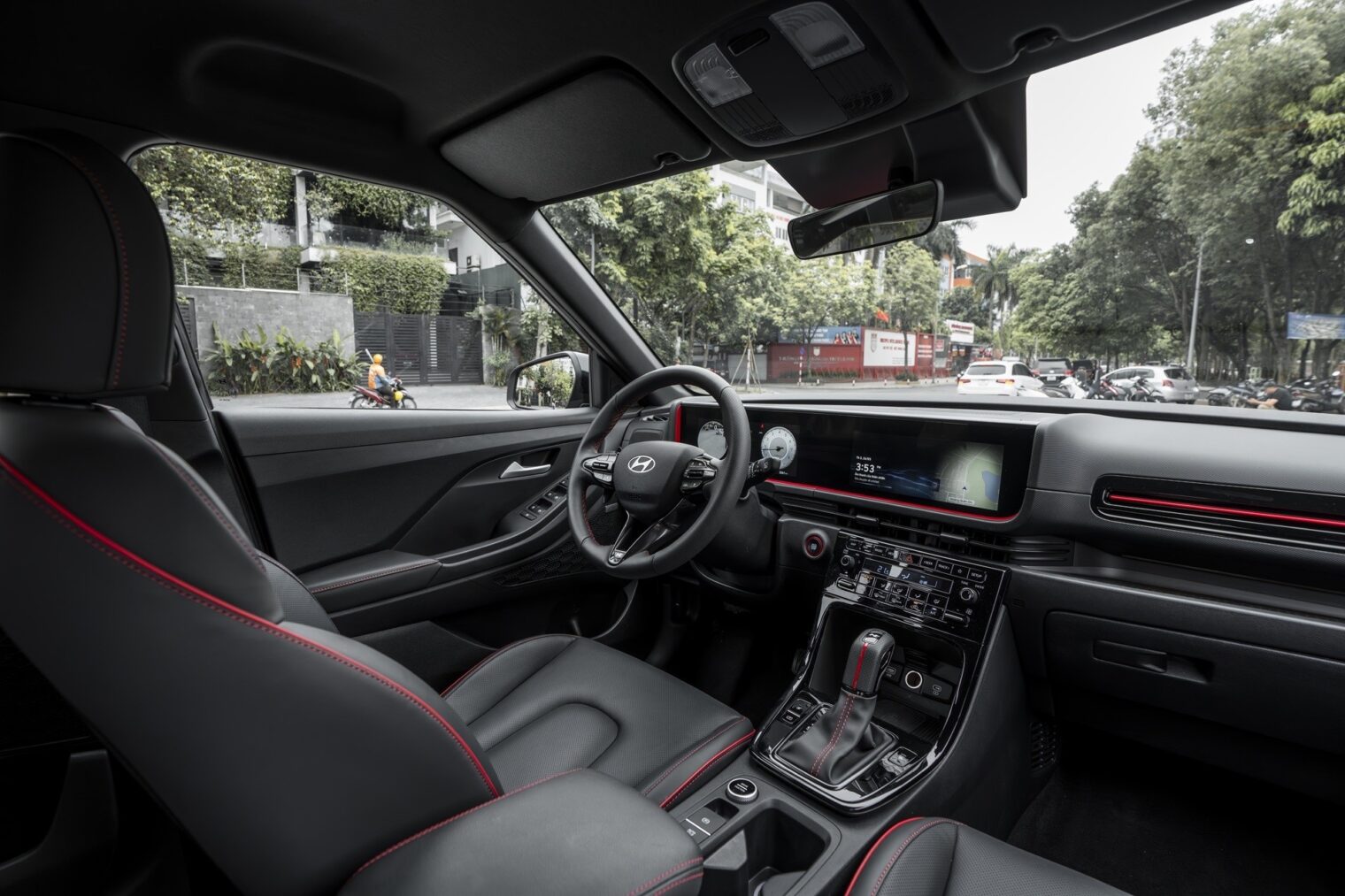 Bảng taplo xe nổi bật với màn hình đa thông tin và màn hình giải trí cảm ứng 10.25 inch ( giống với đàn anh Tucson ) điều khiển đa chức năng nằm ở vị trí trung tâm, tích hợp camera lùi.