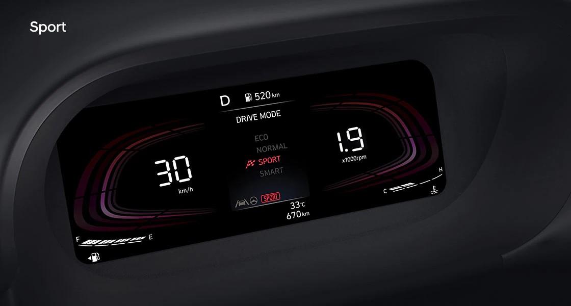 Hyundai STARGAZER X có bốn chế độ lái. Normal cho việc lái xe hàng ngày, Eco tiết kiệm nhiên liệu, Sport để vận hành xe tối đa và Smart để điều chỉnh khoảng thời gian chuyển số tự động dựa trên kiểu lái xe.