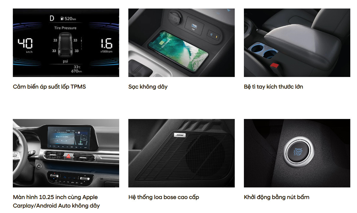Trên hai bản Stargazer X, Hyundai trang bị tính năng sạc không dây tương tự Toyota Veloz. Riêng kết nối Apple CarPlay và Android Auto không dây đầu tiên của phân khúc. Bản cao nhất lắp dàn âm thanh 8 loa Bose.