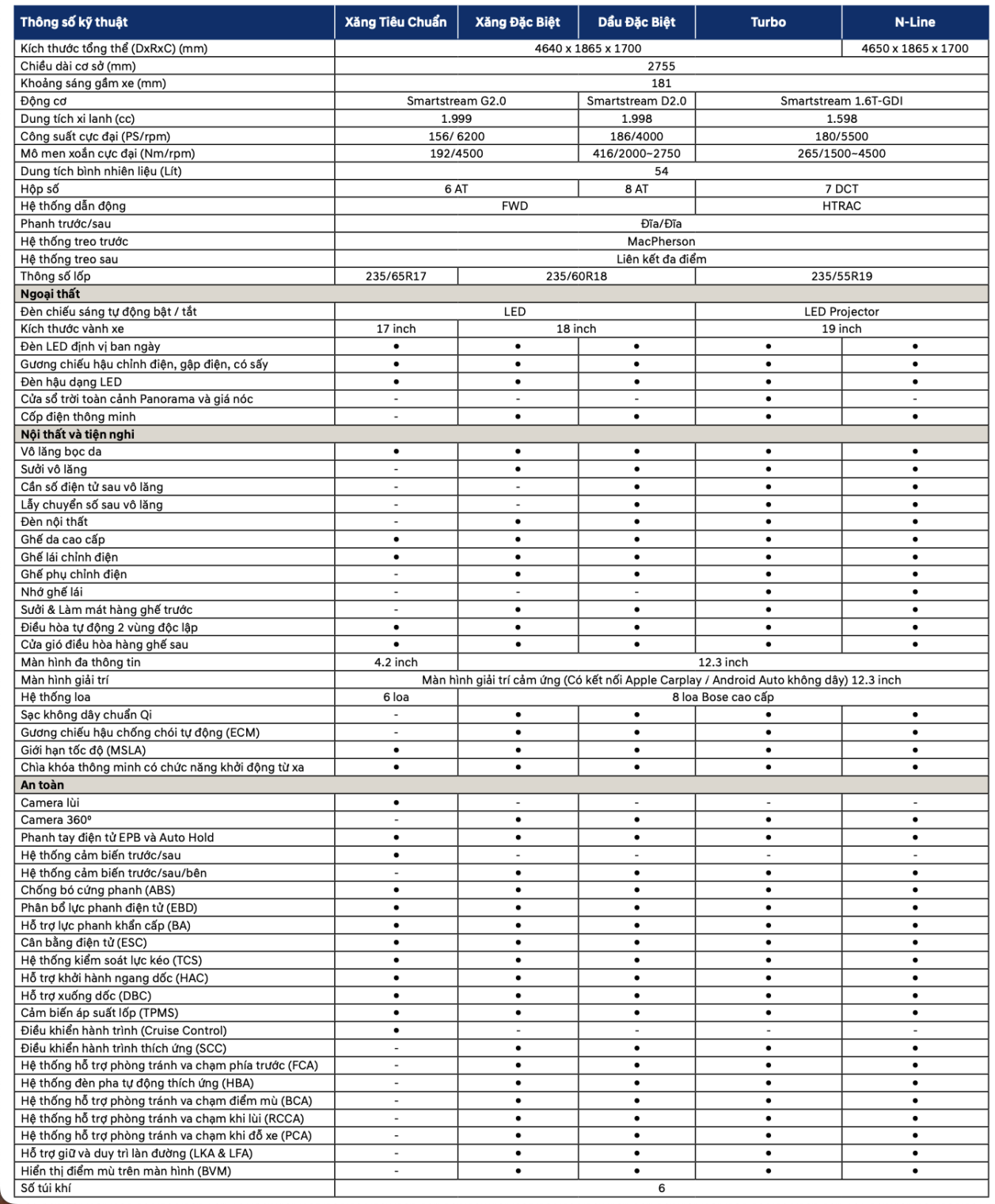 Tucson 2.0 dầu đặc biệt: | 989 triệu đồng |
