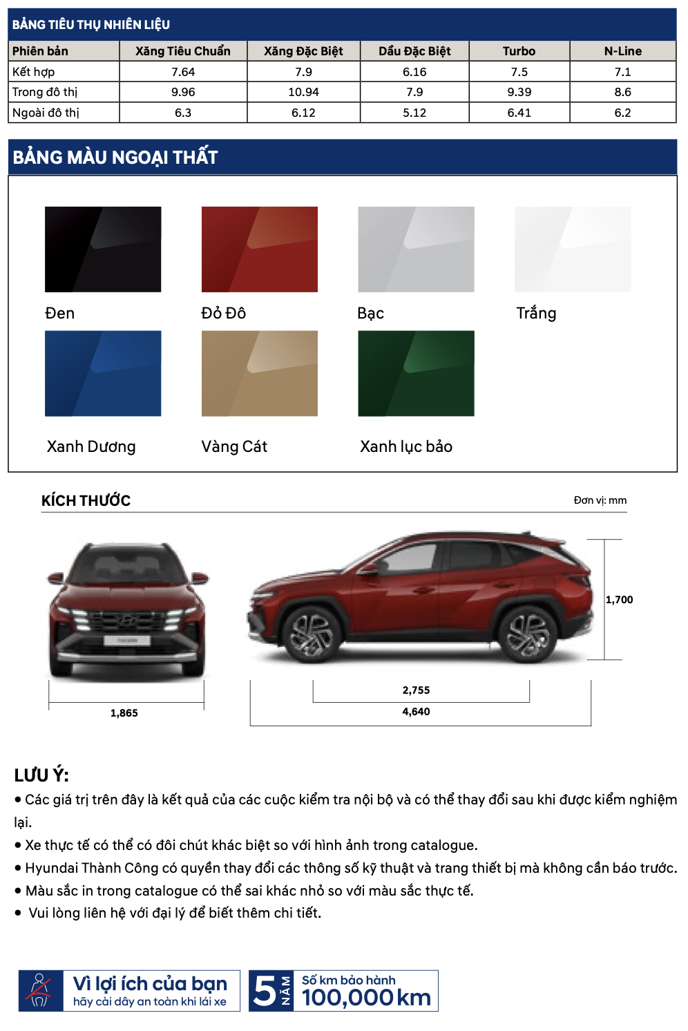 Tucson 1.6T N-Line: | 989 triệu đồng |